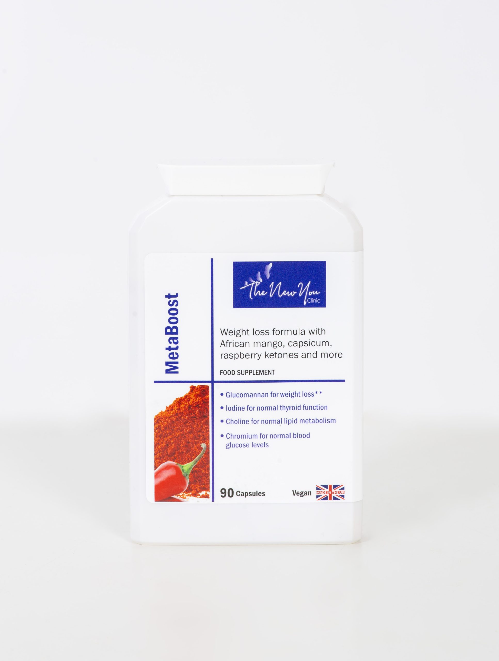 Using glucomannan in combination with an energy restricted diet contributes to weight loss. Choline contributes to normal lipid metabolism. Iodine contributes to normal energy-yielding metabolism and normal production of thyroid hormones and normal thyroid function. Chromium contributes to the maintenance of normal blood glucose levels and normal macronutrient metabolism. Vitamin B6 contributes to the reduction of tiredness and fatigue.