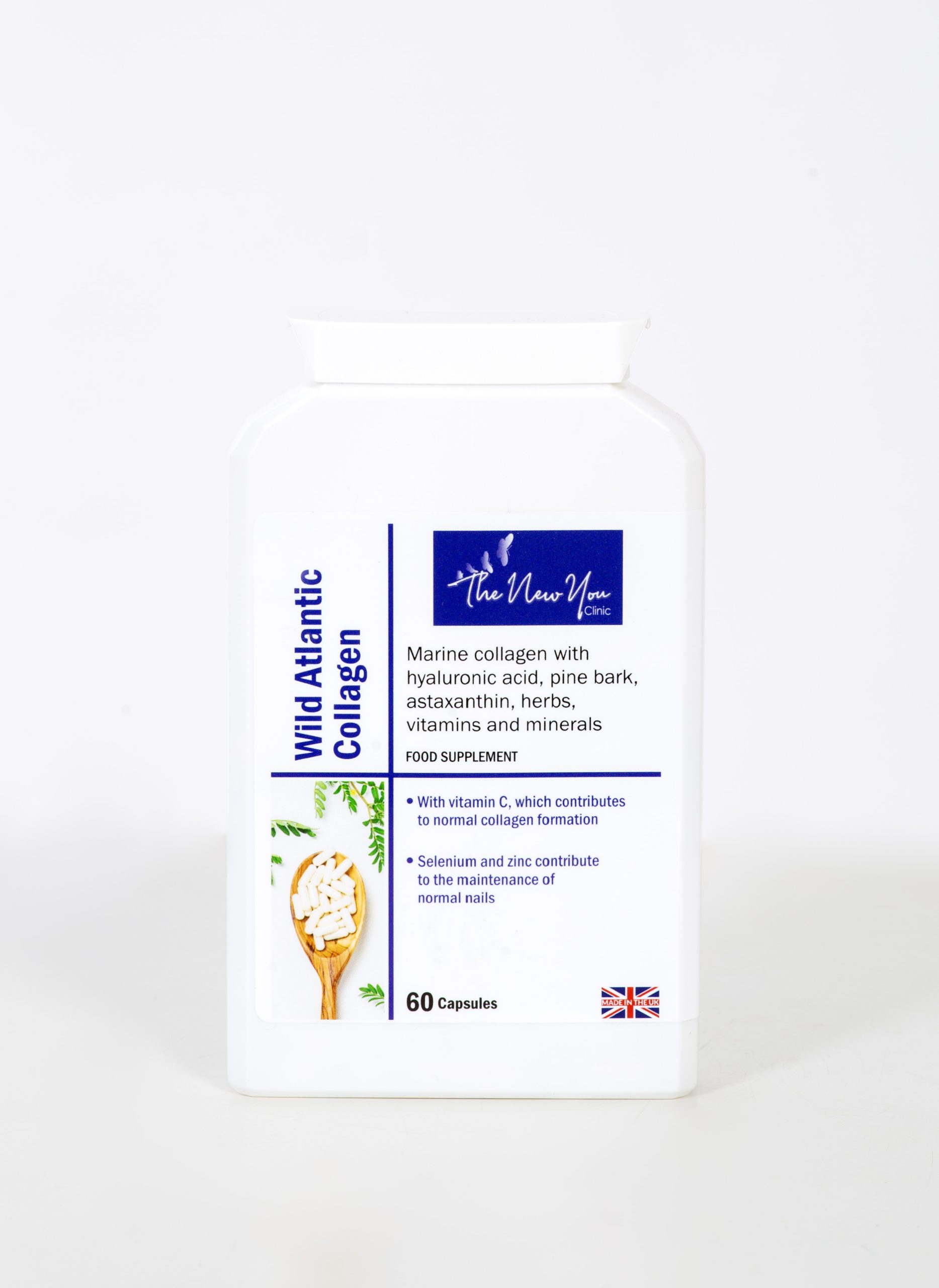 But Wild Atlantic Collagen is more than just collagen. It contains a tailored combination of marine collagen, hyaluronic acid as well as a clever vitamin, mineral, herbal and nutrient complex that is designed to work from within to help protect the body on a cellular level against ageing and oxidative stress. These synergistic ingredients also help to keep skin elastic, radiant and supple.